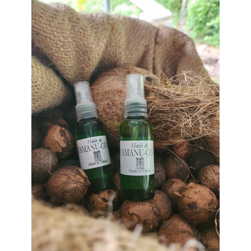 Nos huiles sont obtenues par première pression "à froid" puis légèrement filtrées avant d'être mélangées à hauteur de 90% d'huile de coco et 10% d'huile de Tamanu. Ce procédé permet de préserver toutes les qualités présentes naturellement.
